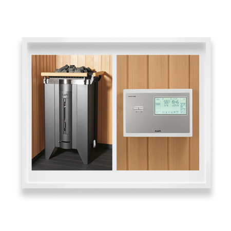 Nachrüstung in vorhandene KLAFS Sauna mit Ofenanschlusswert 6,0 kW oder 9,0 kW, 230 V/400V für Saunavolumen von 7,0 m³ bis 15,0 m³ möglich.